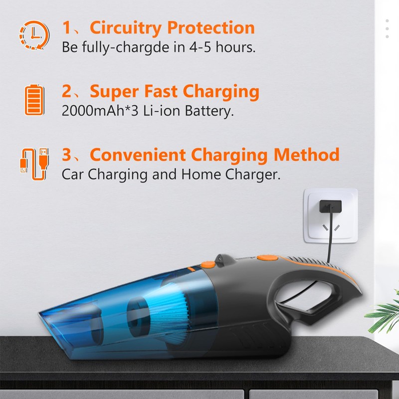 - DURABLE & SAFE: This cordless handheld vacuum, equipped with a 6000mAh lithium-ion battery, ensures long-lasting performance. A quick 3-hour charge provides 25 minutes of continuous cleaning for home, office, or car. Its battery management system monitors charging status, temperature, and voltage to ensure stable current output, preventing overheating and extending battery life.This portable cordless car vacuum integrates seamlessly into your daily cleaning routine, delivering reliable performance wherever you need it