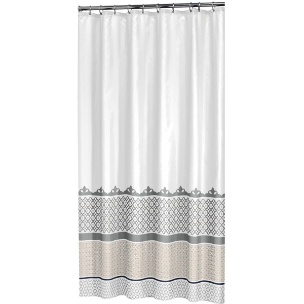- Low maintenance, high quality textile shower curtain. 100% Polyester