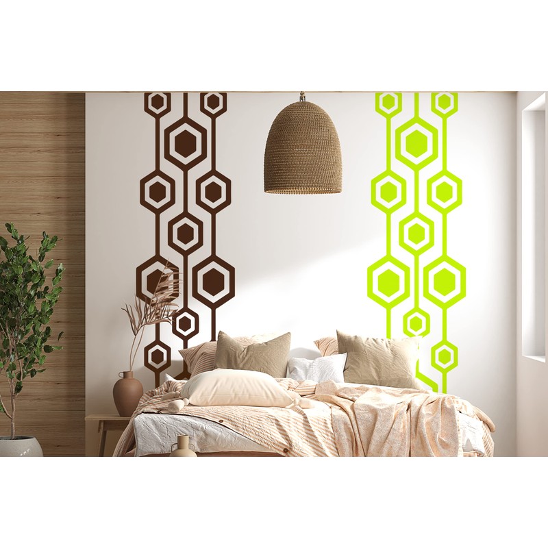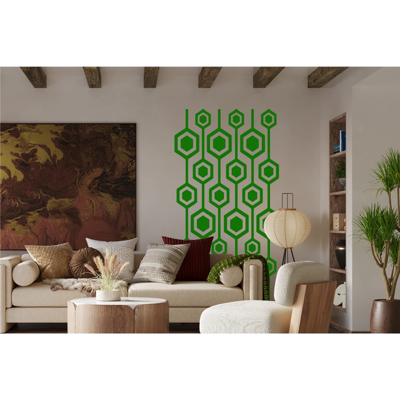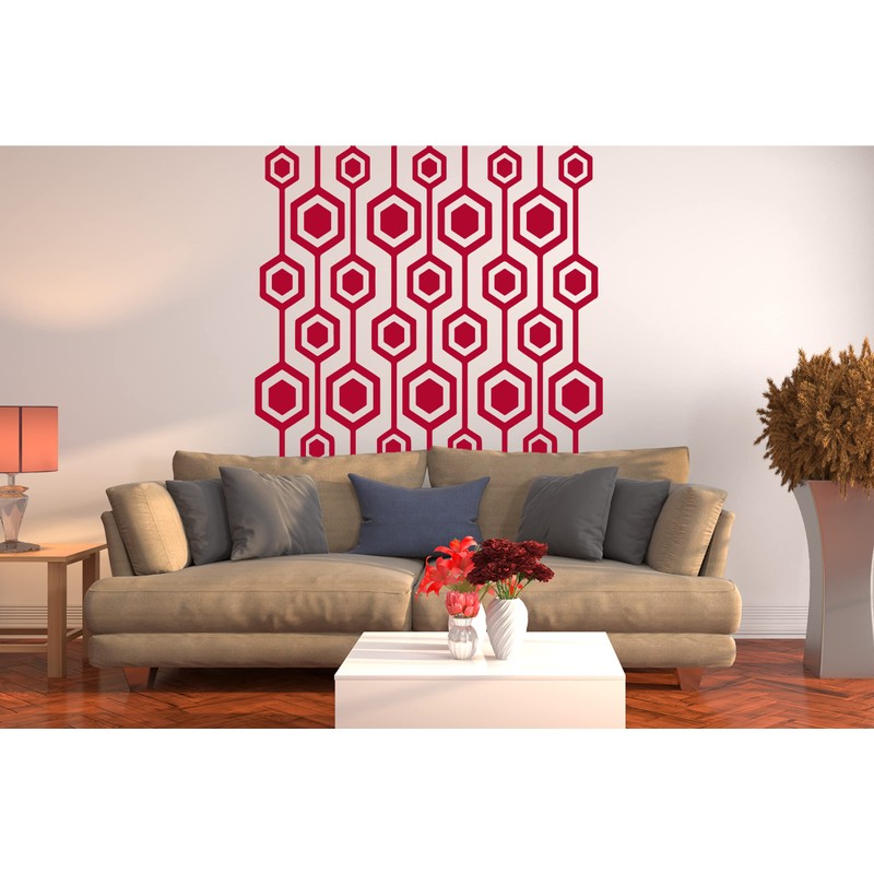 Seamless Retro Pattern Wall Decal | Hexagon Shapes | Modern Mid Century Decor