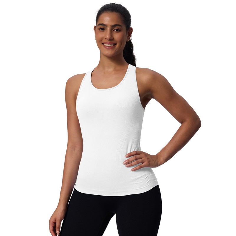 Seamless Womens Breathable Workout Tank Tops Racerback Crew Neck Sleeveless Running Athletic Shirts White