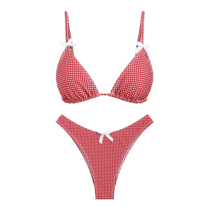 seamoly Women‘s Bikini Sets Two Piece Swimsuit Red Gingham Bow Decor Triangle Bikini Set Red, M