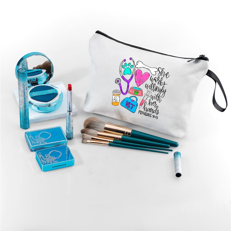 - BEST VETERINARIAN GIFTS:This Nice and practical makeup bag is the funny vet tech gifts for women.The fabric of this cosmetic bag is soft and easy to carry, with the words "SHE WORKS WILLINGLY WITH HER HAND" printed on both sides. It won't fade or scratch over time.