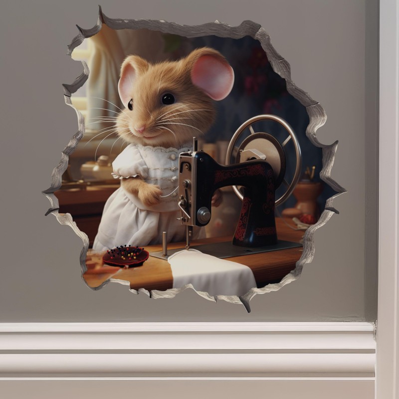 Seamstress Mouse Hole 3D Wall Sticker - Unique Gift Idea