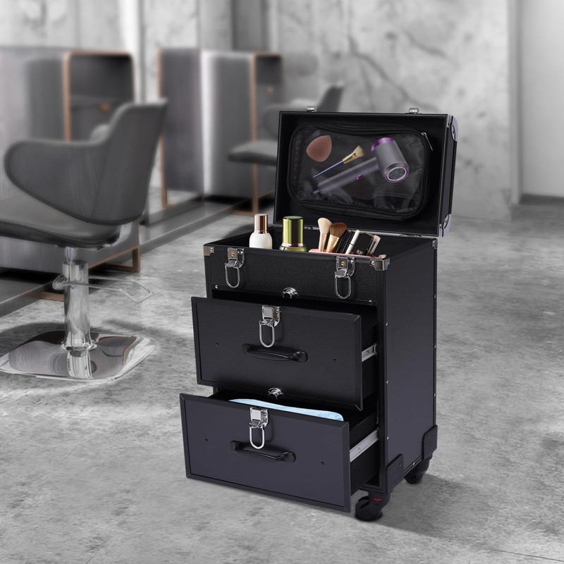 SEANESZTI 3 in 1 Rolling Makeup Train Case, Salon Barber Case Traveling Cart ...