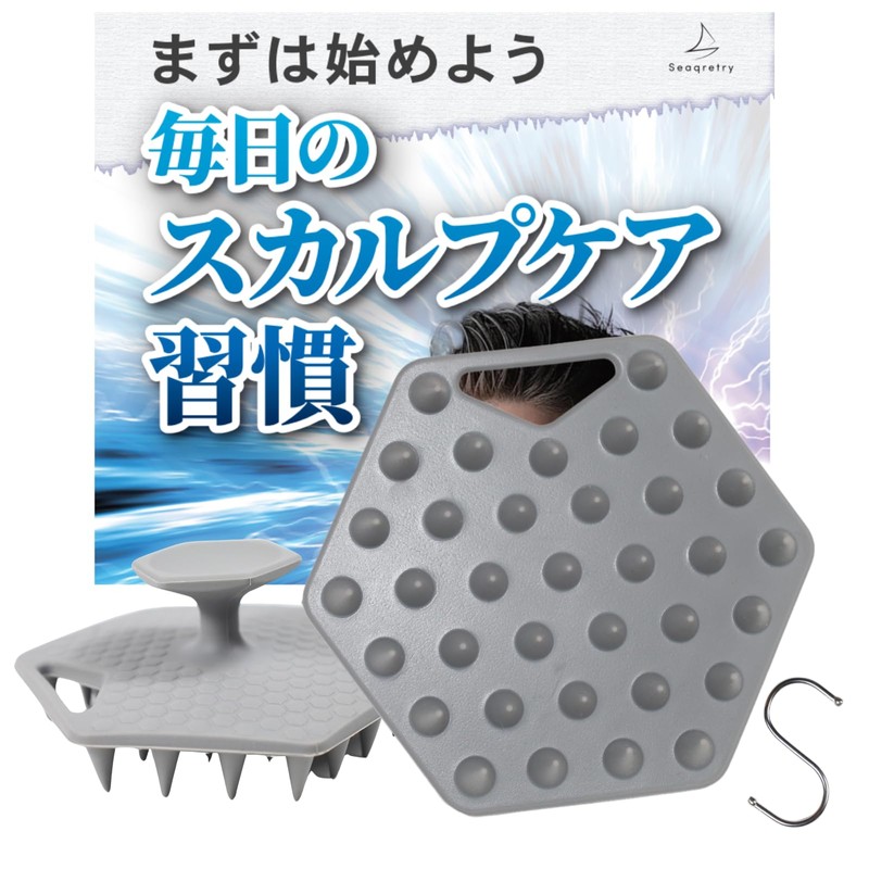 Seaqretry シャンプーブラシ 頭皮マッサージ 頭皮ブラシ 男性用 メンズ シリコン スカルプシャンプーブラシ ヘッドスパ (グレー)