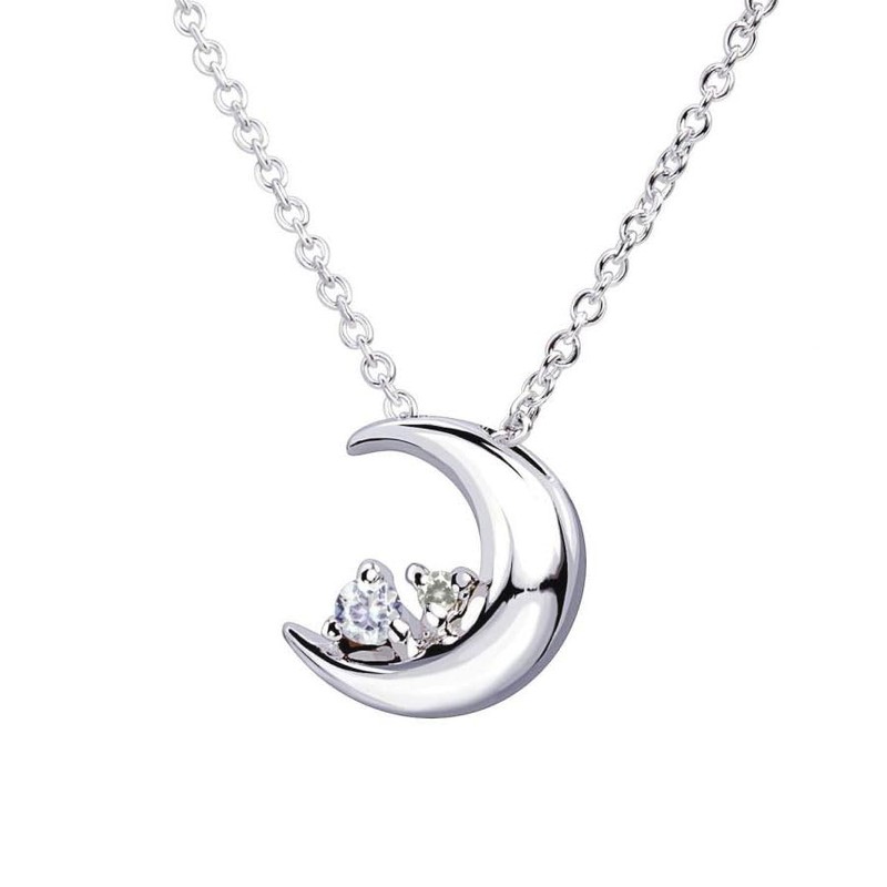 - A popular moon motif necklace set with one of the birthstones and a pair of natural diamonds.Twin stones sparkle against a plump moon. Your birthstone glitters alongside the always popular diamond, just like stars in the night sky.