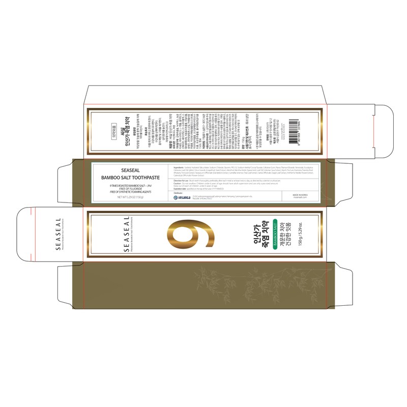 Seaseal Bamboo Salt Toothpaste, with Korea's No.1 9 Times Baked Bamboo Salt to Prevent from Gum Inflammation, Teeth Cavity, Caries, Fluoride-Free, SLS Free, 5.29 oz