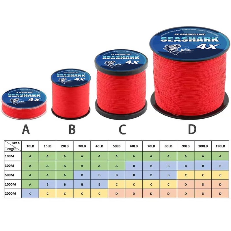 Seashark Braided Fishing Line Color Never Fade 4 Strands Super Strong PE Fishing Line Abrasion Resistant Fishing Wire Zero Stretch Excellent Tensile 6lb to 100lb