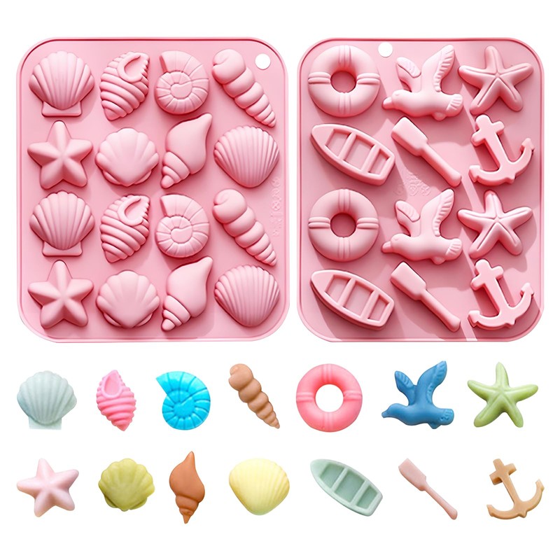 - VERSATILE DESIGN: Set includes 2 pink silicone molds featuring nautical and seashell patterns perfect for ice cubes, chocolates, candies, or soap making