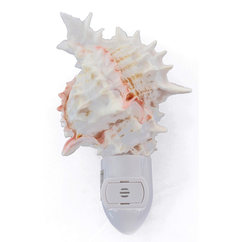 Seashell Night Light Real Pink Murex Shell Beach Decor w. Light Sensor Beautiful Coastal Cottage