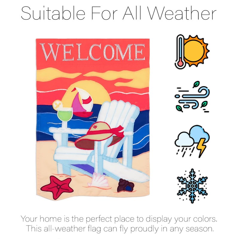 Seaside Garden Flag Stand Kit Wall Hanging Decor for Home Stake Patio Post Embroidered Beach Decorations Welcome Yard Sign Applique Tapestry Sewing Summer Handcraft Gifts for Grandma
