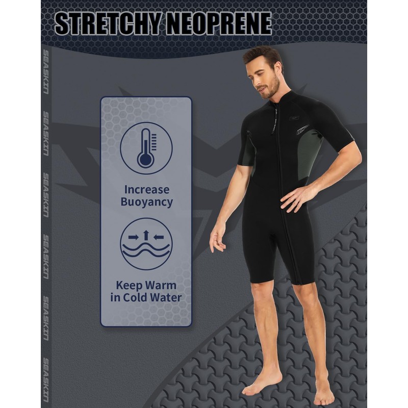 Seaskin Shorty Wetsuits for Mens 2mm Front Zip Diving Suits