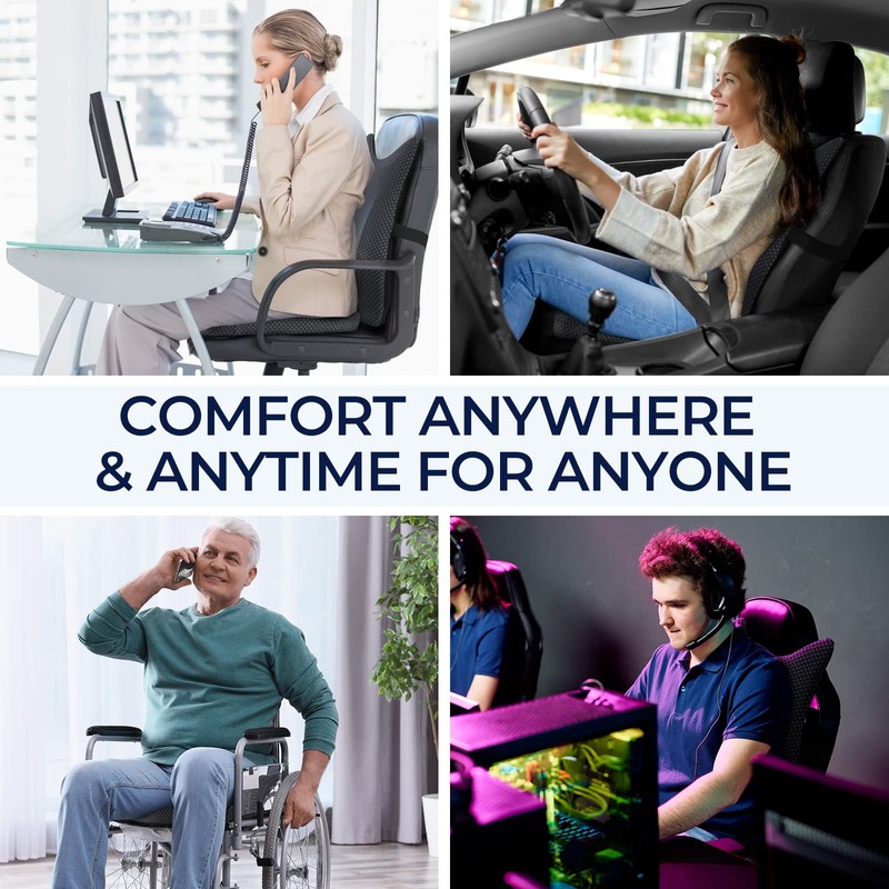 - Best Gift for Men & Women: The memory foam seat cushion and chair back cushion is the perfect gift for family and friends for Christmas, Valentine's Day, Mother's Day, Father's Day, Birthday, Wedding, Housewarming. If your loved one needs to sit for long hours at work or drive, give them this cushion set to experience unprecedented comfort and all-day relaxation.