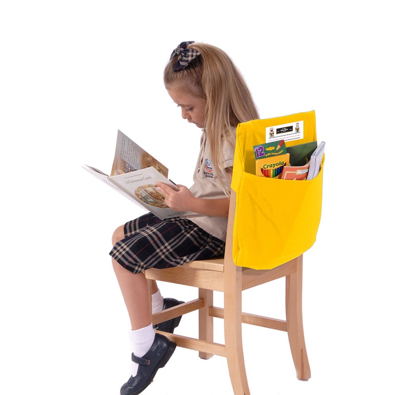 - ''' Desk Organizer: Slides onto the back of a chair for instant storage of books, papers, school supplies and more. Provides personal storage for students.#||# Classroom Organization: Helps students get organized and easily find materials, aids in classroom management. Affordable classroom storage. Seat Sacks are a simple solution for storage space.#||# Durable: Made of a sturdy poly/cotton laminated fabric that meets flammability standards, CPSIA, Prop 65, CCPSA and EU safety guidelines and requirements. Fabric is machine washable on a warm gentle cycle and tumble dry on low.#||# Assorted Sizes, Styles and Colors: Chair should measure 11 inches or less across the very top of the back of the chair and 3 inches down from the top of the back, the chair should measure 14 inches or less.#||# Package Contains: 1 Seat Sack and 1 Name Card'''