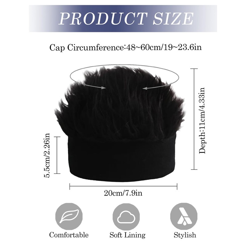 SEAUR Novelty Hair Peaked Cap Visor Hat with Spiked Wigs Men Short Hair Wig Headband Outdoor Wig Hat, black