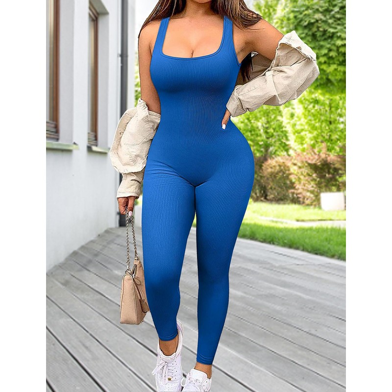 SEAUR - Ribbed Jumpsuit for Women Yoga Bodysuit One Piece Unitard Bodycon Playsuits Long Sleeve Tank Tops Ladies Romper Gym Workout Clothes