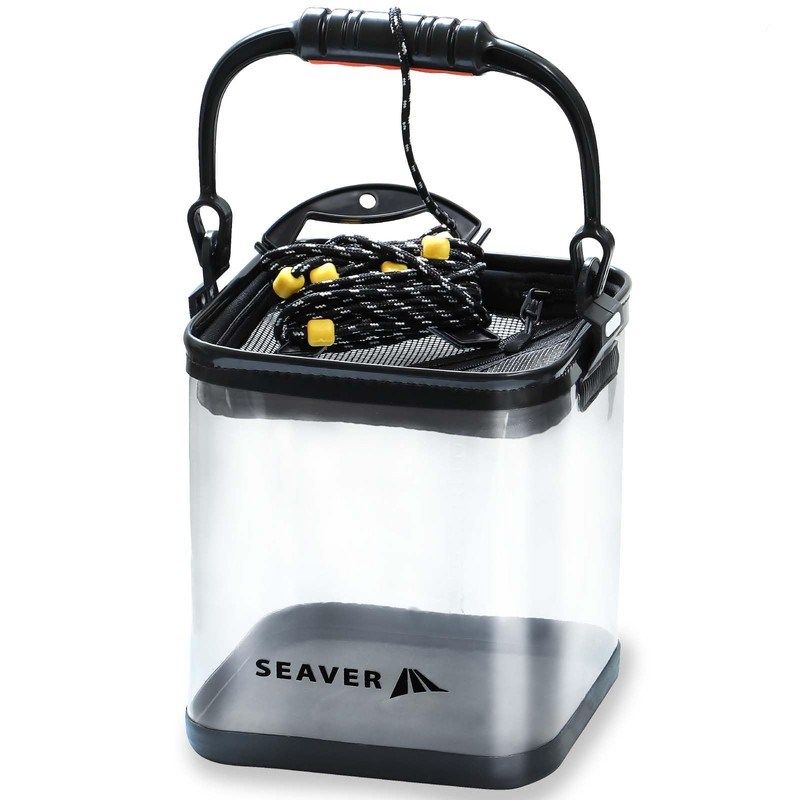 SEAVER Fishing Bucket, Transparent, 3-Piece Set, Fish Can Be Seen at a Glance, Fishing Tackle for Water Drawing, Foldable, Pliers, Fish Grip, 7.9 inches (20 cm), 9.4 inches (24 cm)