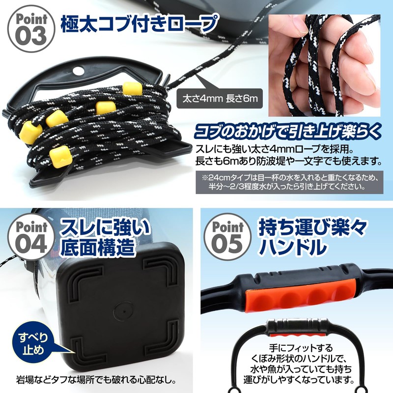 - (See fish at a glance) The clear body allows you to easily see the condition of the fish you have fished with. This item is very easy to use for situations where you want to check the condition of mackerel and mackerel when swimming or taking fish home alive. Also recommended for those who want to collect their fishing tools from now on, with a pair of pliers and fish grips