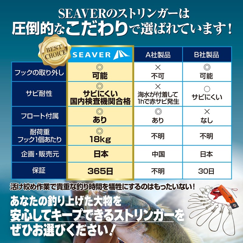 SEAVER Stringer with Float, Rust Resistant, Spring Loaded Hooks, 5/10 Pieces,...