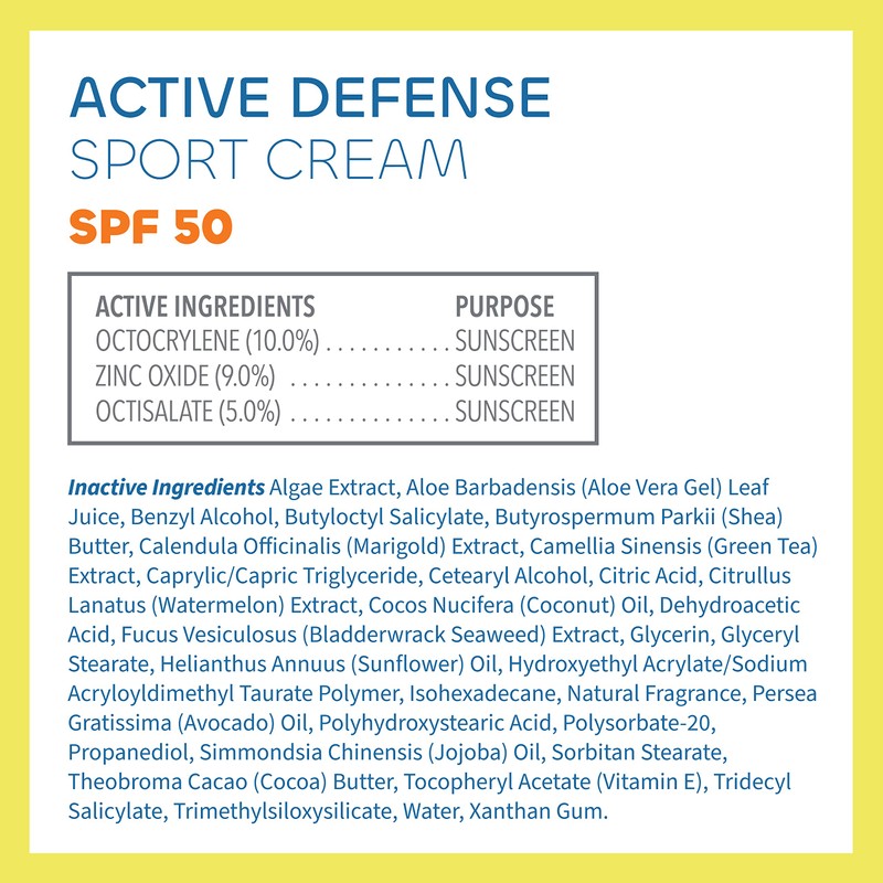 - Splash in the Surf: Active Defense Sport Cream SPF 50 is a non-greasy hybrid formula that combines UV-reflective zinc oxide and UV-absorbing sunscreen actives for blendable, sheer protection