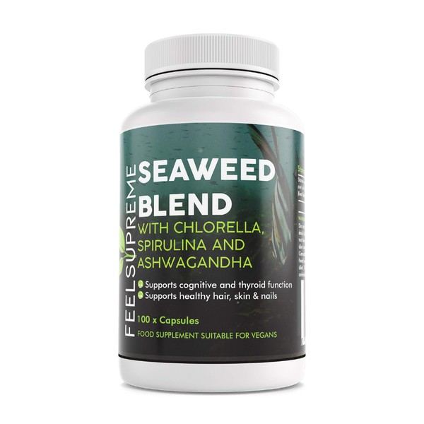 Description 100 Capsules: Approx 2 month supply With added chlorella, spirulina and KSM 66 ashwagandha Our Seaweed Blend is an alkalising, cleansing, detoxification and daily nourishment formula, which combines the prime nutrient-dense foods from both the sea and Earth’s soil. The ingredients include 2 different species of food-approved seaweed (Ascophyllum nodosum and Fucus vesiculosus), artichoke, chlorella, green tea leaf, spirulina, ashwagandha root and cayenne. This food supplement is iodine-rich and high in a broad spectrum of protective nutrients, including antioxidants, phyto- chemicals, polyphenols, enzymes, amino acids, vitamins and minerals. Iodine and as a natural plant based source of collagen, supports healthy hair, skin and nails. Ingredients per Capsule; Iodine (from the seaweed) – 192mcg seaweed (Ascophyllum Nodosum and Fucus Vesiculosus) – 300mg Other ingredients – 290mg spirulina powder, artichoke powder,chlorella powder, green tea leaf powder, ashwagandha root powder, cayenne powder