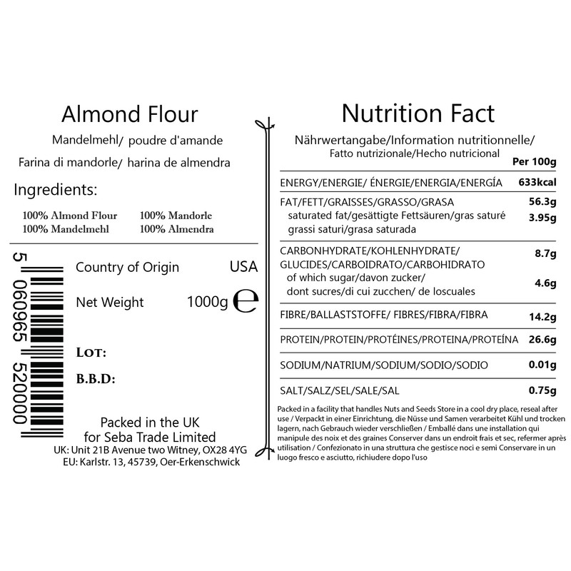 Seba Garden Seba Garden Extra Fine Almond Flour Blanched 1Kg Ziplock Packing Resealable Ground Almond from California Keto Friendly