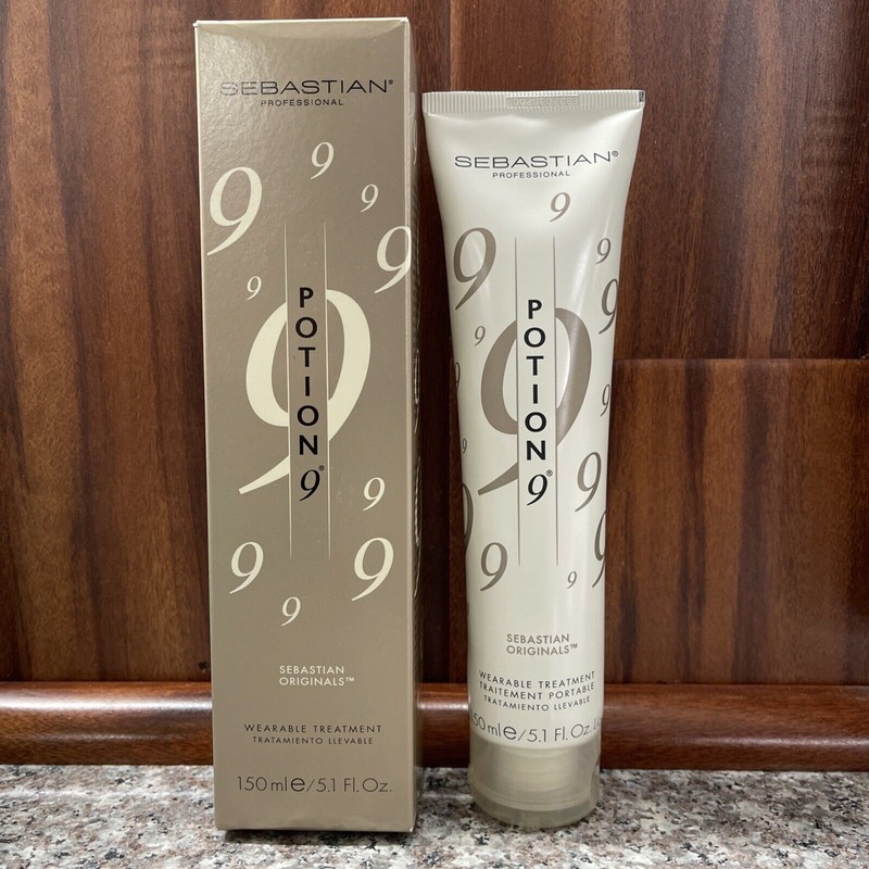 This is a Sebastian Professional Original Potion 9 Wearable Treatment in a 5.1oz size. It is a cream formulation containing Keratin and minerals, suitable for all hair types. This finishing product provides nourishing, hydrating, and anti-frizz benefits while offering heat protection. It is part of the Sebastian product line and is cruelty-free.
