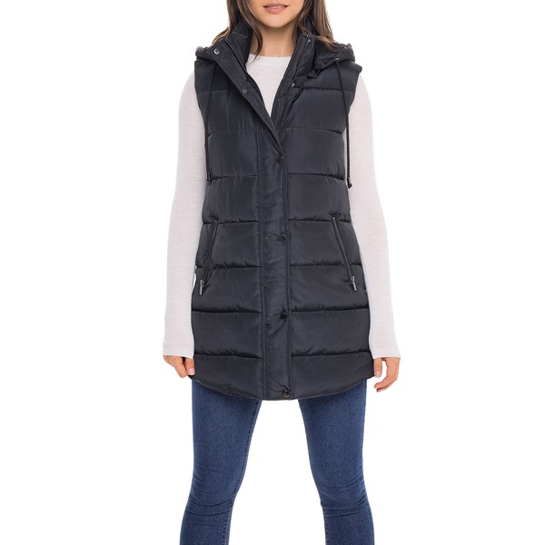 Sebby S.E.B Women's Long Puffer Vest, Quilted Faux Down Filled Hooded Vest for Fall and Winter