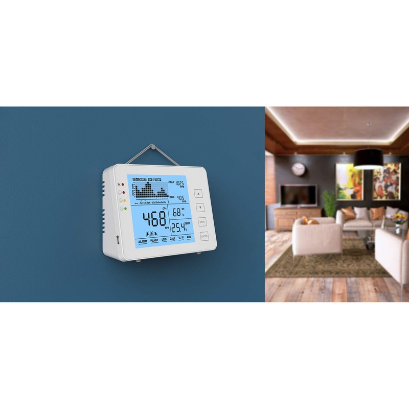 - HIGH MEASURING RANGE CO2 from 0 - 5000 ppm with an accuracy of +/- 50 ppm, humidity: 0-95% and temperature 0 - 90° C