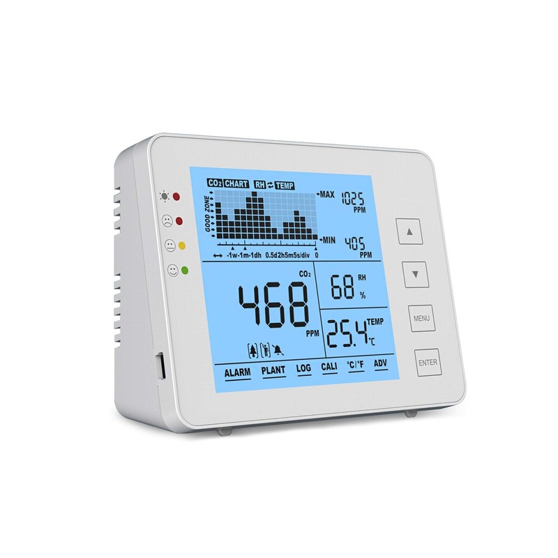 - DIGITAL DISPLAY shows the current CO2 concentration, temperature and relative humidity