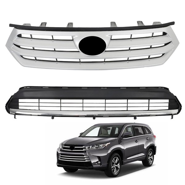 SEBLAFF Chrome Front Bumper Upper and Lower Grille Assembly Set Replacement for 2011-2013 Highlander