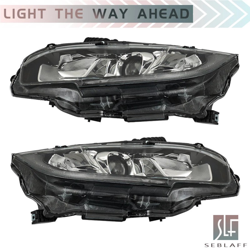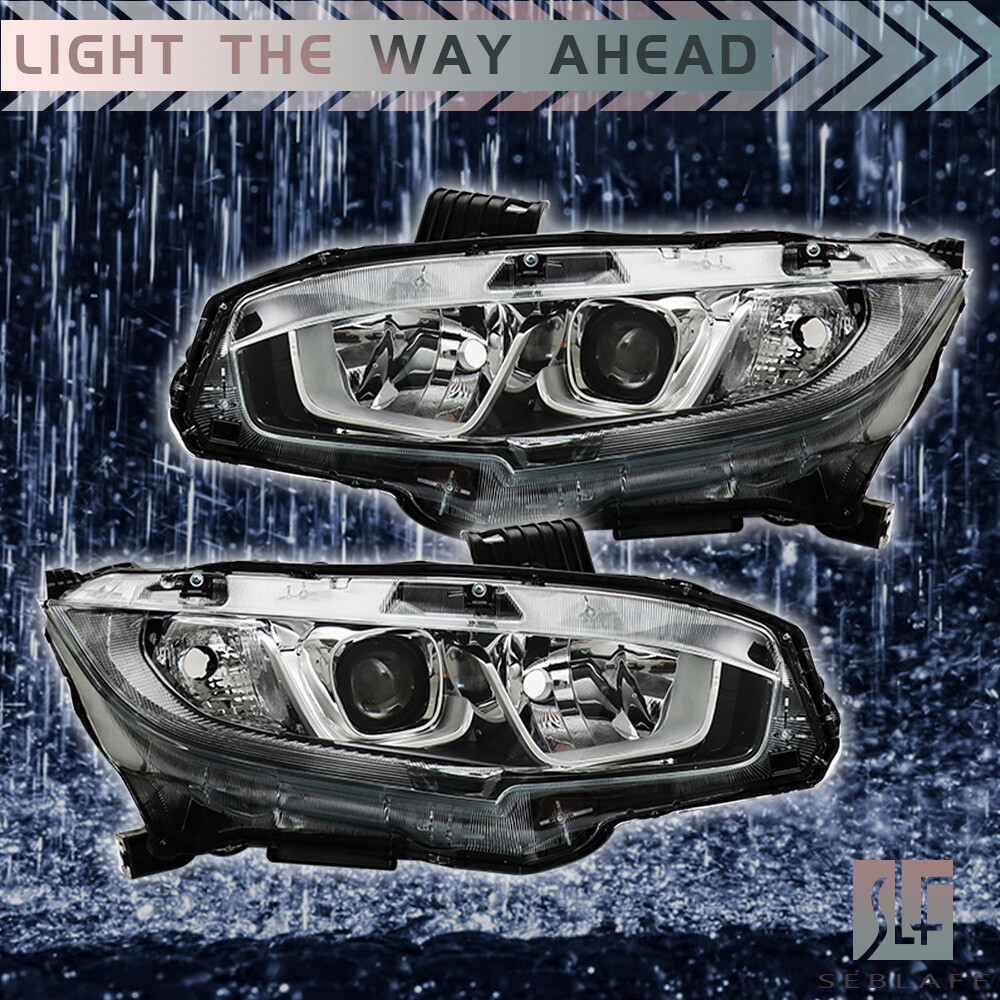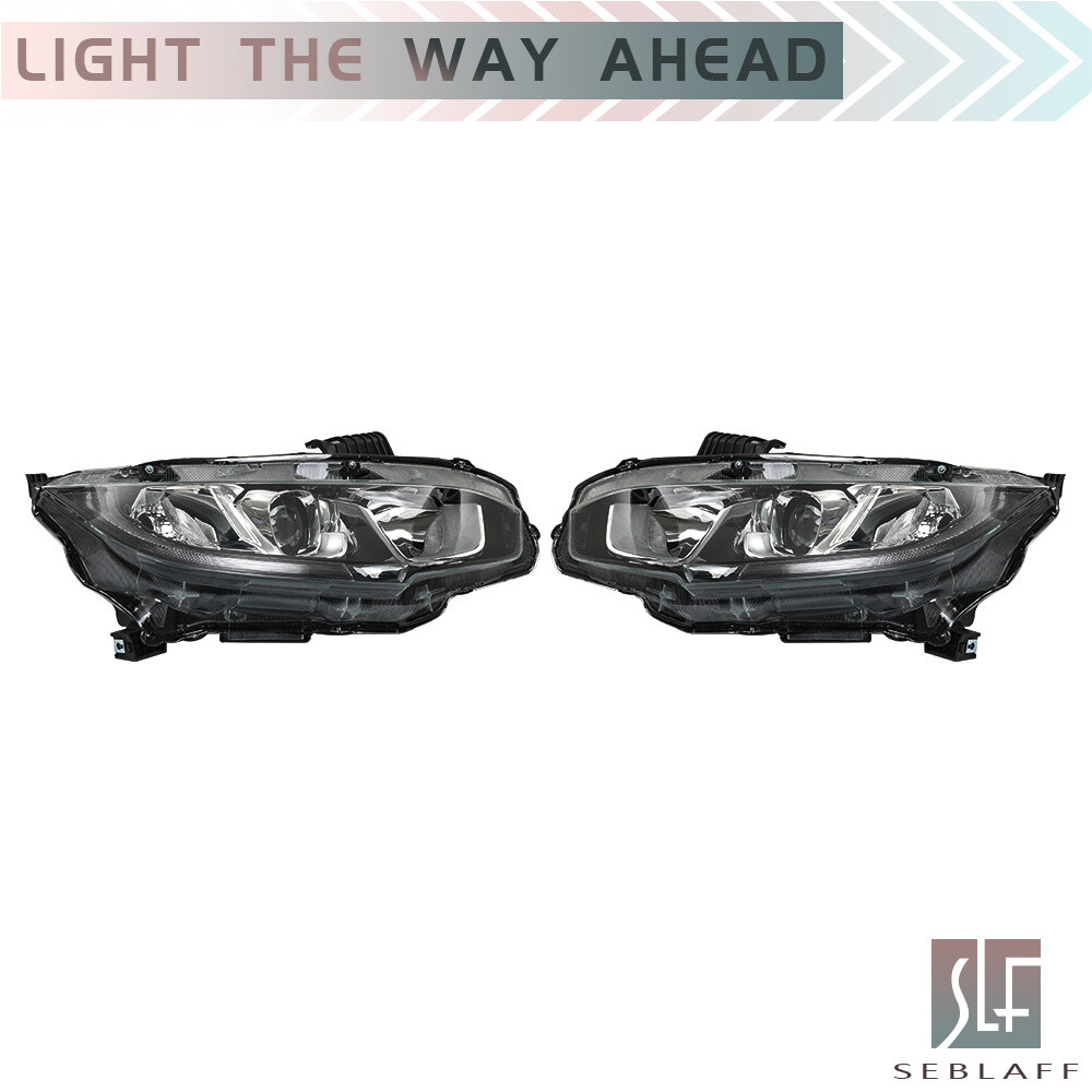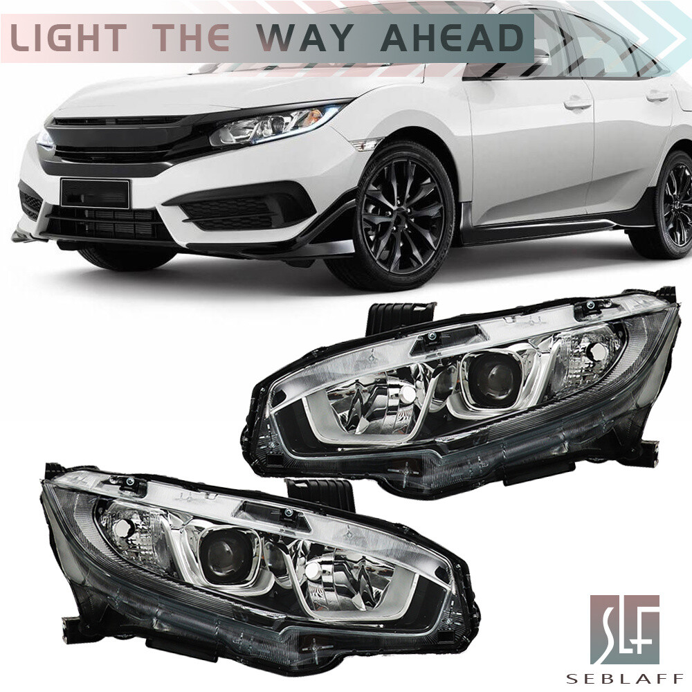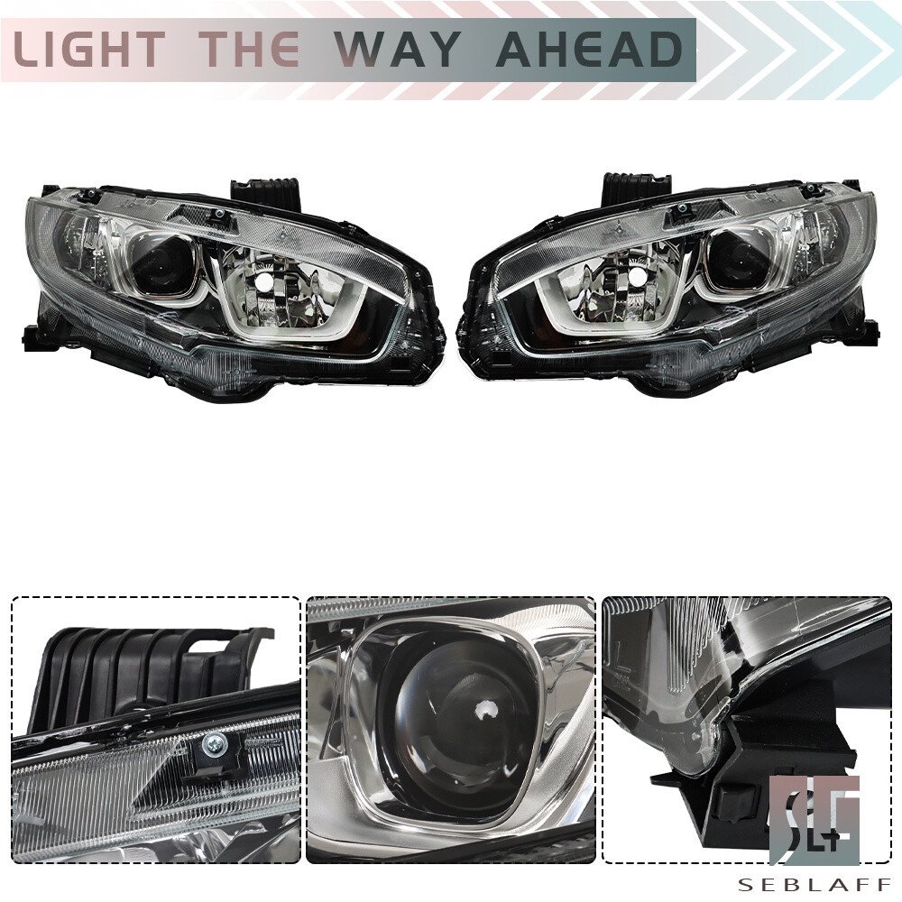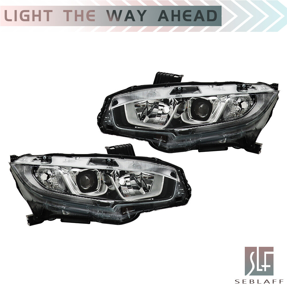 SEBLAFF For 2016-2020 Honda Civic Halogen W/LED DRL Headlights Clear Electroplated Pair