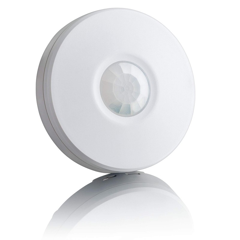 This surface-mounted motion detector is best suited for ceiling mounting.