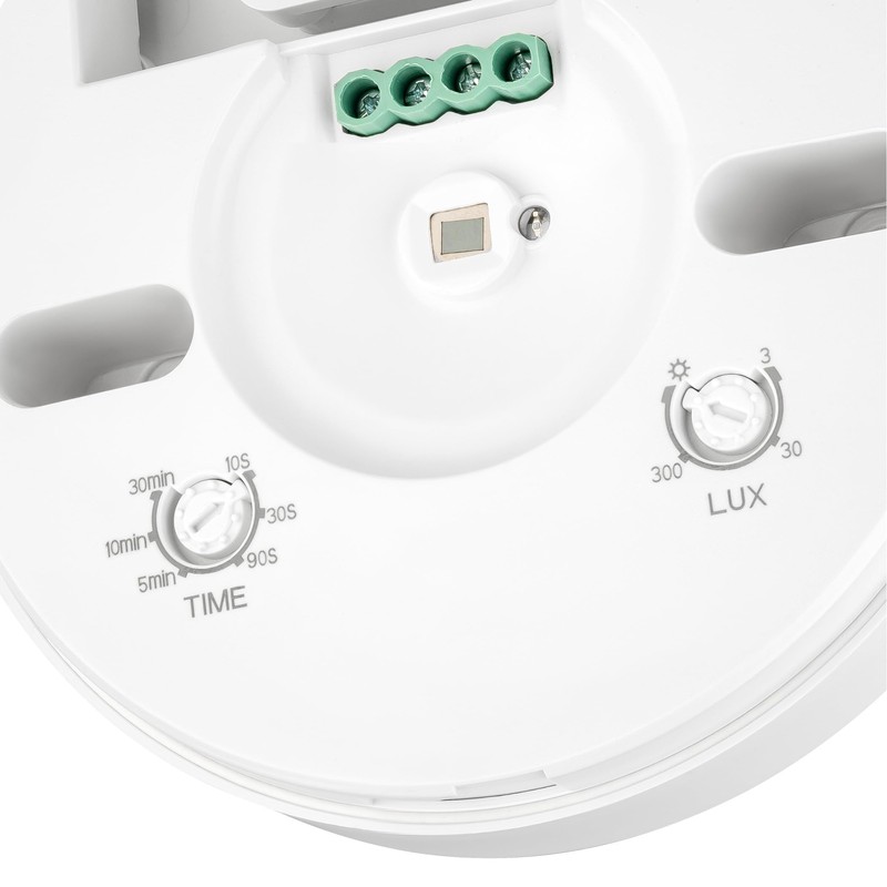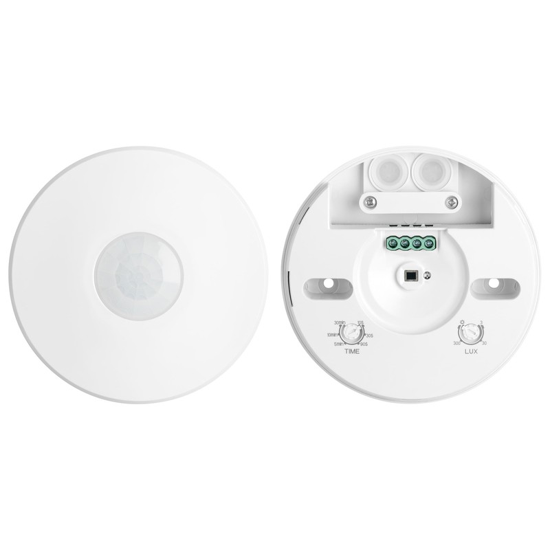 - SEBSON motion detector for outdoor and surface ceiling mounting, dimensions Ø109x24mm, protection grade IP65, 3-Wire.