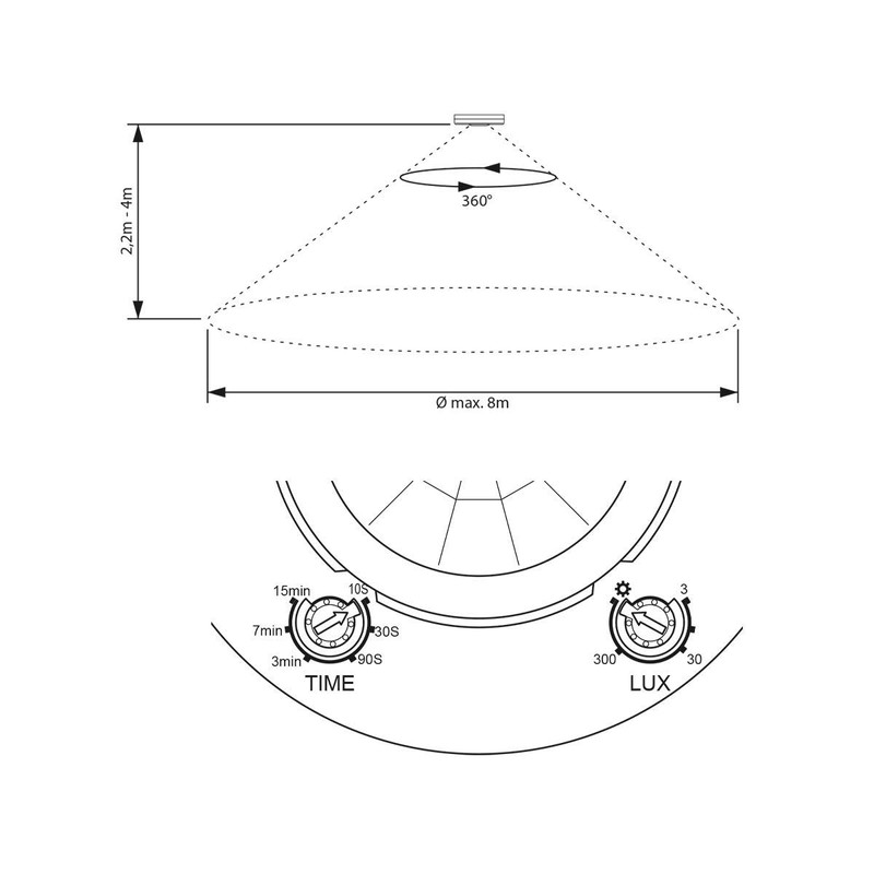 - The motion detector can also be adjusted according to the ambient brightness (in the range between 3 and 2,000 LUX).