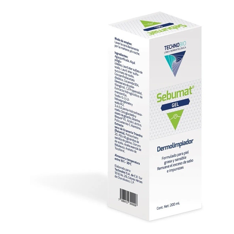`gel facial`, `piel grasa`, `limpiador antibacterial`, `control de sebo`, `dermolimpiador`, `acné`, `Sebumat`, `limpieza profunda`, `cuidado facial`