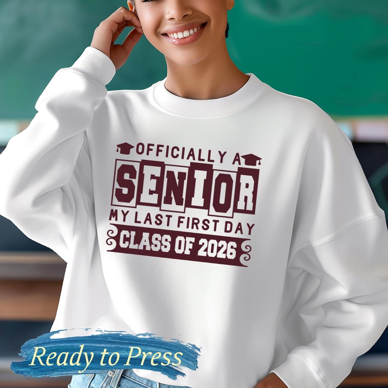 SEC Apparel Officially A Senior 2026 My Last First Day Class of 2026 Iron On Patches Decals Transfers Applique Letters for t Shirts Fabric Clothing | Graduate