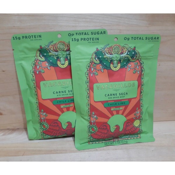 seca 2 Pack VACADILLOS air dried Beef Jerky Carne Seca Chili Lime Gluten Free Protein