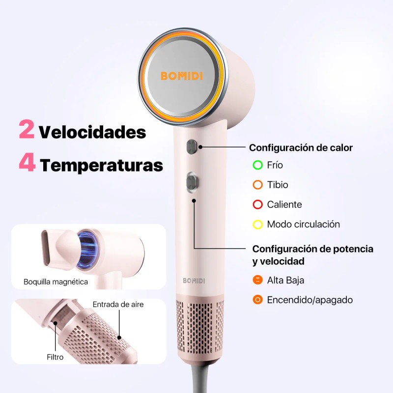 Su sistema de ionización negativa neutraliza la electricidad estática, controla el frizz y deja tu cabello increíblemente suave, sedoso y brillante. Además, cuenta con una elegante pantalla LED que permite visualizar claramente los ajustes de temperatura y velocidad, brindándote un control total en cada sesión. Su diseño ergonómico y liviano lo hace ideal tanto para profesionales como para uso doméstico. Perfecto para quienes no se conforman con menos que un acabado de salón. 💇♀️🔥🌟