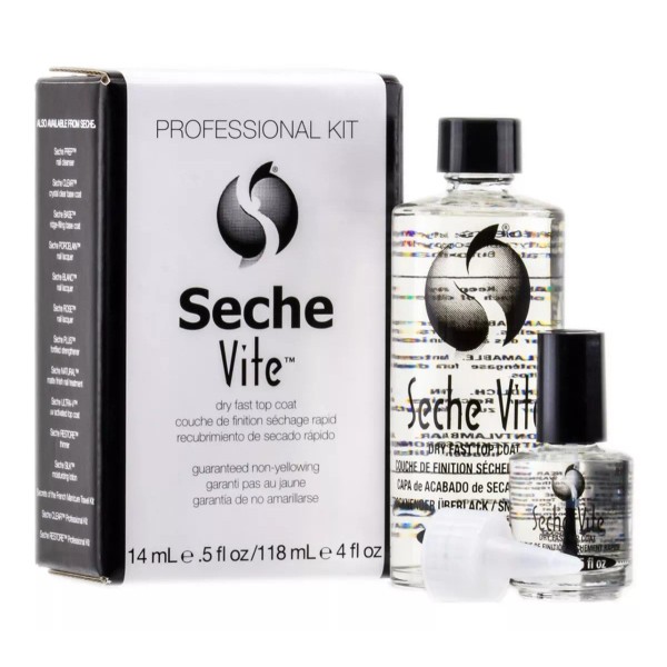 La capa superior de secado rápido Seche Vite es ampliamente reconocida como la capa superior más fina del mundo. Especialmente formulado para penetrar a través del esmalte de uñas hasta la capa base formando una única capa sólida sobre la placa de la uña para un acabado mucho más duradero. Garantizado que no amarillea dejando las uñas sedosas, más fuertes y resistentes a astillas y peladuras.