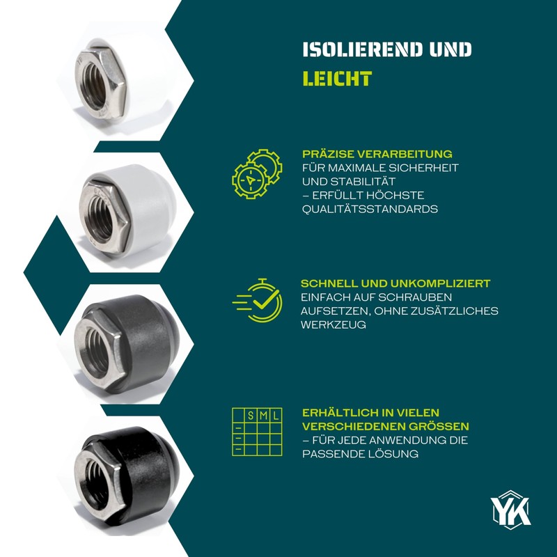 - VERSATILE PROTECTION - Perfect fit for hex bolts & nuts. Protect your screw connections from rust & dirt - suitable for horticulture, furniture, fences & vehicle parts.