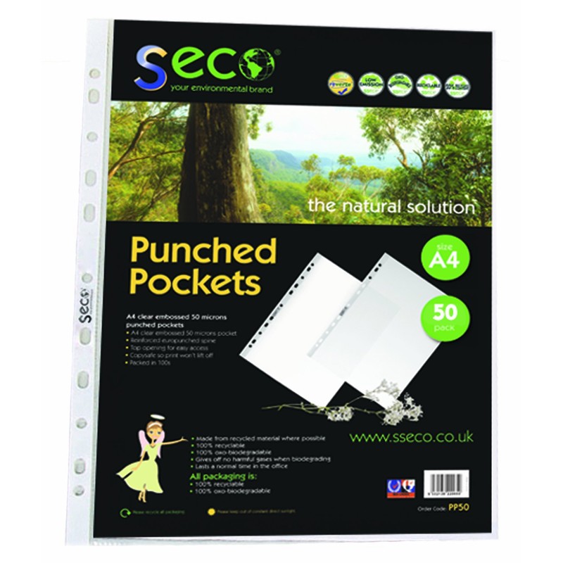 SECO A4 Multi Punched Pockets, Heavy Duty, 50 Micron Pack 50 - Filing