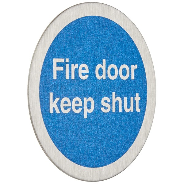 Seco Fire Door Keep Shut Sign, 72mm Diameter - 1.2mm Brushed Stainless Steel