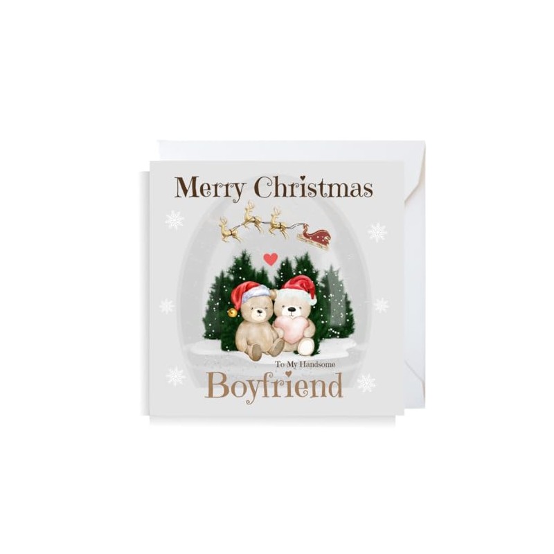 Second Ave Cute Bear Boyfriend Square Christmas Xmas Holiday Festive Greetings Card