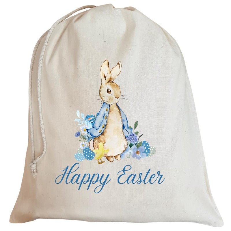 Second Ave Cute Blue Bunny Rabbit Easter Sack Bag Easter Egg Hunt Basket Gift Bag Boys