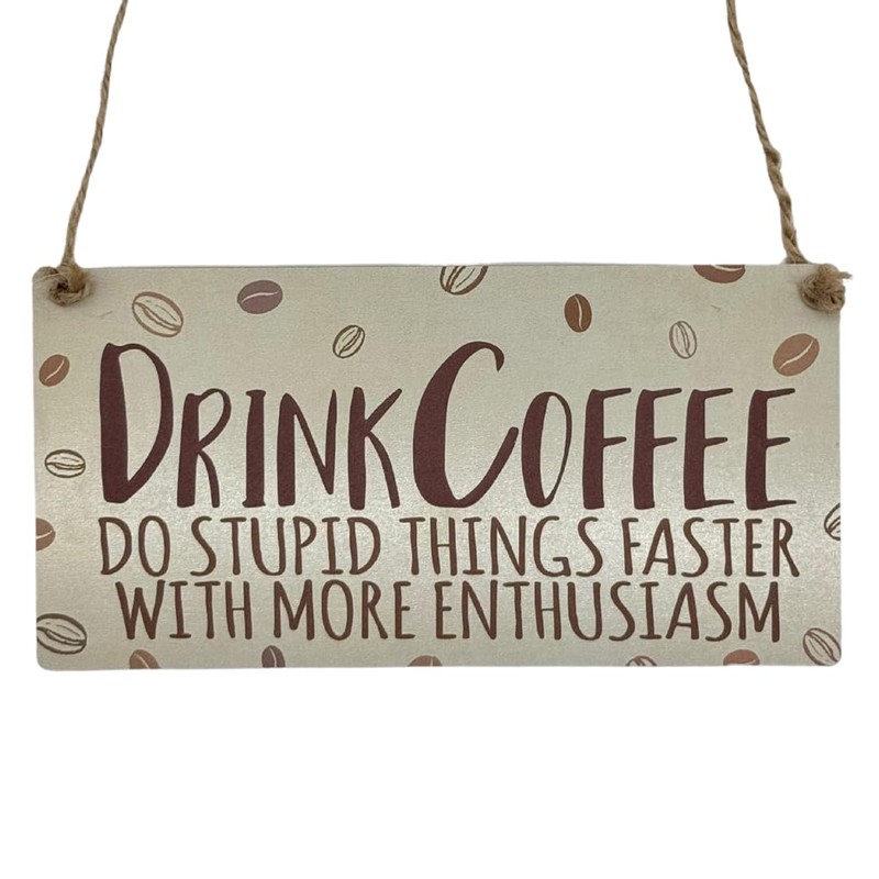 Second Ave Funny Drink Coffee Wooden Hanging Gift Rectangle Home Cafe Sign Plaque
