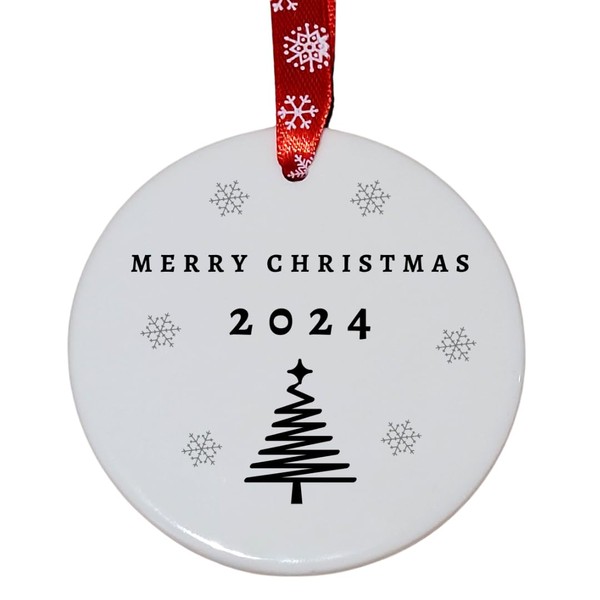 Second Ave Merry Christmas Year Tree White Ceramic Hanging Circle Christmas Xmas Tree Decoration Bauble