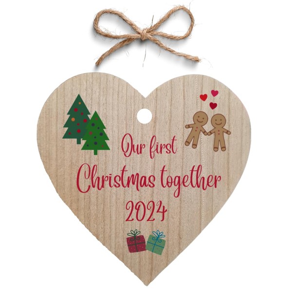 Second Ave Our First Christmas Together Cherry Wood Hanging Heart Christmas Xmas Tree Decoration Bauble