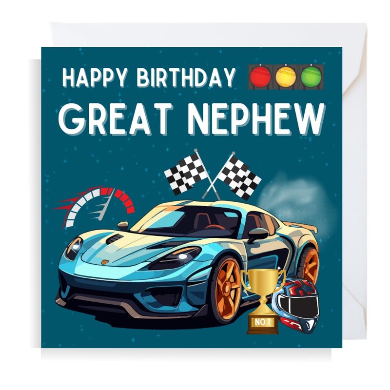 - Great Nephew Birthday Racing Car card.