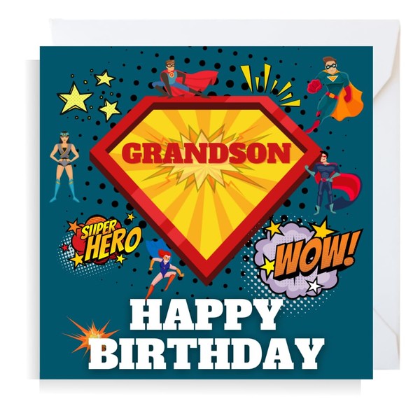 Second Ave Superhero Grandson Square Children's Kids Birthday Greeting Card for Boy
